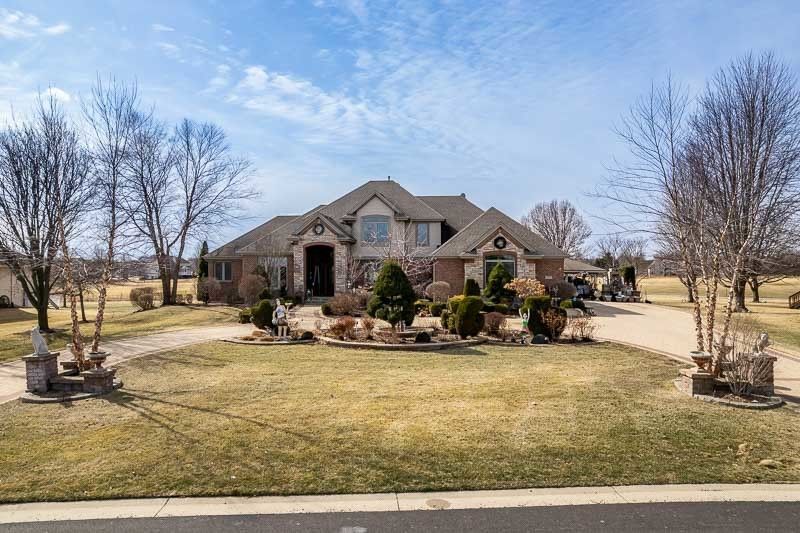 Welcome to this stunning custom-built residence where luxury living meets golf course serenity. Backing up to the picturesque Timber Point Golf Course, this exceptional home offers over 5000 square feet of thoughtfully designed living space. Captivating floor-to-ceiling windows flanking an impressive Chilton stone fireplace in the great room. The Brazilian cherry flooring throughout the dining room and great room adds warmth and sophistication that whispers elegance with every step. The chef's kitchen is a culinary dream featuring maple cabinets, a granite center island, and generous pantry storage. This masterpiece flows seamlessly into the enclosed rear porch and great room, creating the perfect harmony for entertaining. A main floor office provides an ideal workspace, while the formal dining room awaits your most memorable gatherings. The main floor primary suite offers convenient single-level living, while upstairs you'll discover three additional bedrooms, including two connected by a Jack and Jill bath and a third boasting its own ensuite. The finished lower level transforms into an entertainment paradise complete with wet bar, home theatre, media space, a fifth bedroom, and full bath. Outside, your personal oasis awaits with professional landscaping, inground sprinklers, and an entertainer's dream featuring a pizza oven, grilling area, and pergola. Recent updates include furnace and air conditioning from 2021, water heater from 2023, and water softener from 2025. Families will appreciate nearby Belvidere North High School and the scenic Bonus County Path for outdoor adventures.