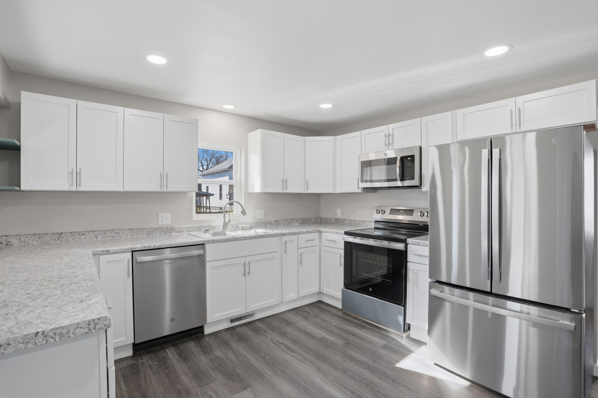 This completely remodeled 4 bedroom features a main level bedroom & laundry, upper level master suite, open concept kitchen / living room, and a full set of appliances. All new electrical, furnace, water heater, and plumbing. Convenient location close to downtown and the riverfront. Don't miss this one!