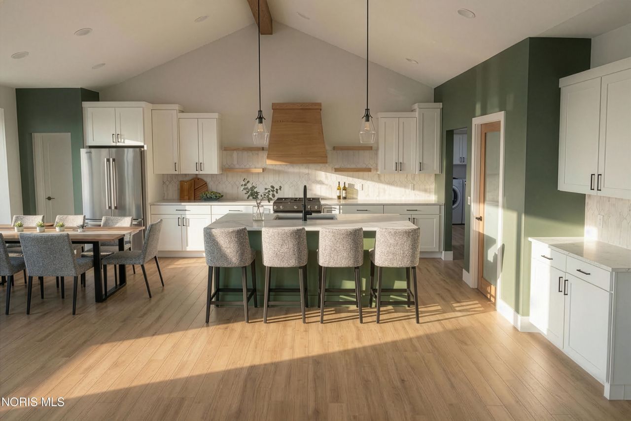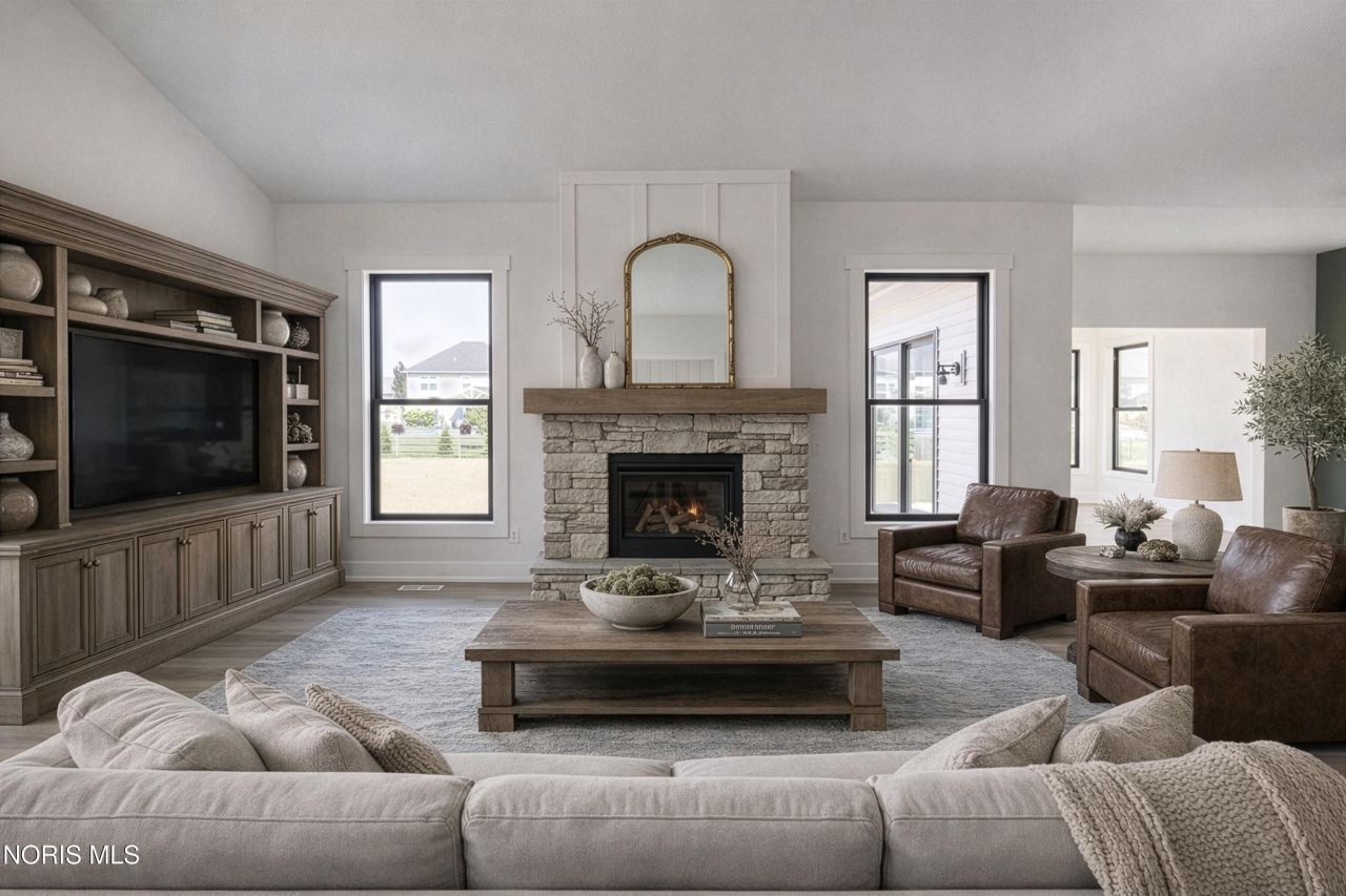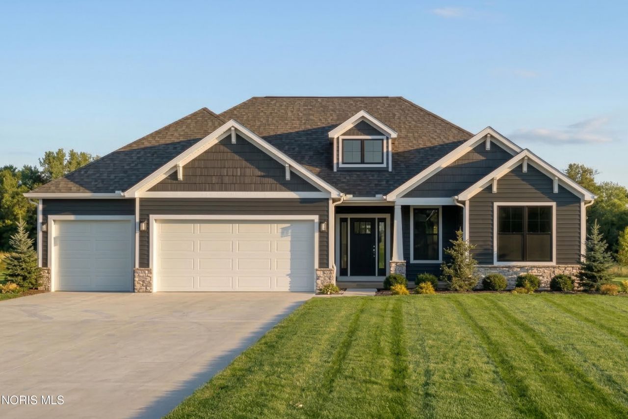 This home was designed, interior-designed, and built by award-winning and high-end custom builder, Homes by Josh Doyle. This new construction custom home offers the highest level of structural quality and energy efficiency. Features include ½ closed cell spray foam exterior walls with fiberglass batt insulation & R-50 ceiling insulation (perfect for rising energy costs!), 4000 PSI concrete w/ fiber mesh foundation walls, premium-grade studs and OSB, and top-tier basement drainage and waterproofing systems. This quality is un-matched in the industry for spec homes. The layout is a perfected 'master class' custom home design specifically for this lot. NOT COOKIE CUTTER. Learn more about the quality on the How We Build page of their website. Contact directly to do a 3D walk-through of the home to visualize interior finishes and layout in a virtual meeting or in-person at HQ in Whitehouse, Ohio. Location / Lot This residence is situated in the highly sought-after Winterbourne subdivision in Monclova, OH. Located in Monclova TWP means no local city taxes! These lots are 195' deep which is plenty of room for entertaining, hobbies, a pool, or just being really far away from your neighbor! Layout This spectacular split ranch single floor home offers an incredible open-concept floor plan designed for effortless living and entertaining. Right off the welcoming entryway, you will find a private den. The heart of the home features a large kitchen that flows directly into a stunning great room and a bright sunroom, both feeling massive thanks to soaring cathedral ceilings. The primary suite is tucked away for privacy on one side of the home, featuring a large walk-in closet and a master bathroom designed for relaxation with dual sinks, tiled shower, and a large soaking tub. On the opposite side of the home, the home features 2 additional bedrooms with their own separate and private hallway, connected bath has double sink vanities & private tub/shower/toilet room. Completing the layout is a dedicated mudroom and a separate laundry room located just off the everyday entrance from the three-car garage. Exterior This home offers incredible curb appeal with striking solid black windows featuring vertical grids for a sleek modern look, an elegant front door, and crisp white long-panel garage doors. Beautiful siding is perfectly highlighted by premium cedar shake accents in the gables and gorgeous stone wainscot across the front elevation. Custom stained cedar touches, including inviting front porch columns, and decorative gable trusses, give the exterior a truly bespoke, high-end Craftsman feel. Interior Inside, a breathtaking kitchen awaits with stunning two-tone cabinetry, gleaming quartz countertops, sleek matte black hardware, and a stained wood door with frosted glass leading to a walk-in pantry. Entertaining is a joy around the spectacular gas fireplace, featuring a beautiful stone surround, a custom stained mantle, and painted shiplap all the way
