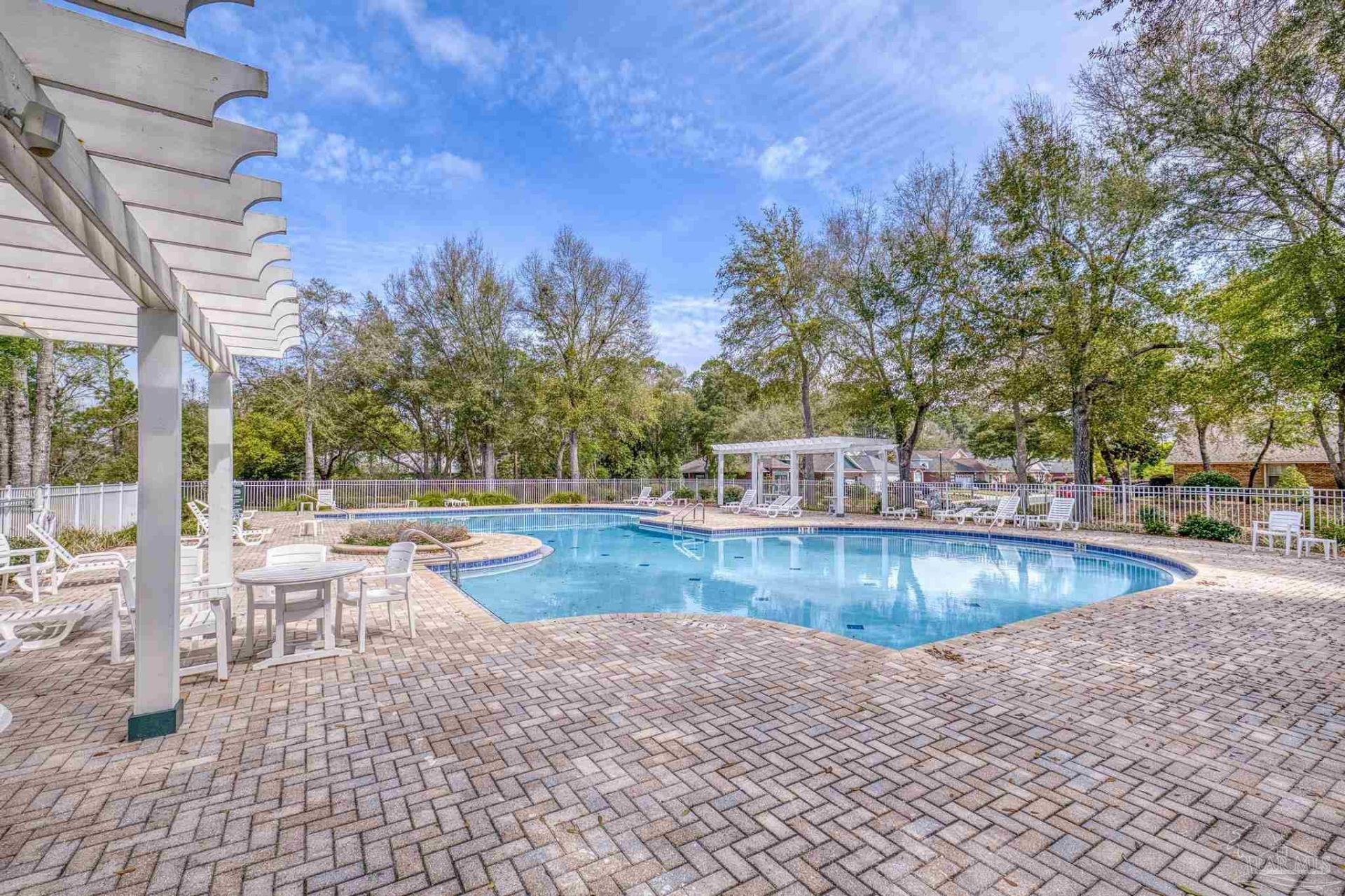 This beautifully designed, open-concept home features soaring ceilings and a unique split floor plan that blends comfort with functionality. The spacious great room, highlighted by a double-sided fireplace, flows seamlessly into a separate breakfast area and formal dining room-perfect for both everyday living and entertaining. A bright and inviting sunroom provides additional living space, ideal for morning coffee or relaxing year-round while enjoying peaceful views. The private primary suite offers a true retreat, complete with a luxurious en-suite bath featuring a garden tub, double vanity, and a separate shower for added comfort and convenience. All additional bedrooms are generously sized with ample closet space and storage throughout. Step outside to a large screened lanai overlooking beautifully landscaped greenspace, creating a serene setting for a low-maintenance indoor/outdoor lifestyle. Tucked away on a quiet cul-de-sac within the gated Herons Forest community, residents enjoy access to amenities including a pool, tennis courts, picnic area, and scenic nature trails with connections to preserved acreage leading toward the Intracoastal Waterway. Conveniently located near NAS Pensacola, Big Lagoon State Park, Perdido Kids Park, and the stunning Perdido beaches, this area is loved for its natural beauty and accessibility. Sidewalks inside and outside the neighborhood add to the charm. Complete with a spacious two-car garage and additional storage, this home offers the perfect combination of style, space, and location.